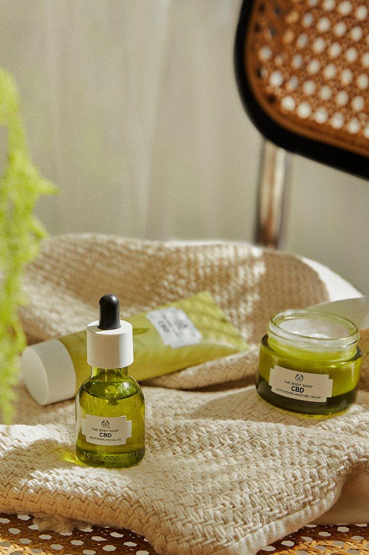 The Body Shops CBD range looks incredible Credit. The Body Shop CBD Replenishing Moisture Cream 20 If youre looking for a nourishing-but-lightweight daily moisturiser that calms dryness-induced discomfort while it works then look no further. Enriched with a blend of naturally derived CBD and hemp seed oil the lightweight non-greasy formula helps to restore your skins moisture levels and relieve the discomfort of dehydrated skin.